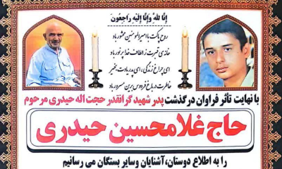 آمل خبر (آمل نیوز) – قربانعلی مسافر /حاج غلامحسین حیدری پدر بسیجی شهید «حجتالله حیدری» به علت کهولت سن در سن ۸۵ سالگی آسمانی شد. حاج...